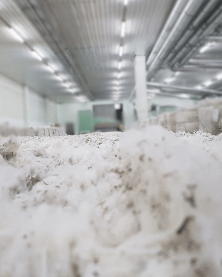 Temsan’s automated waste collection system gathers pneumafil, and fiber waste from spinning mill and transports it to a central waste room with compactors or silos. This system reduces labor, prevents contamination, and ensures cleaner production floors.